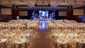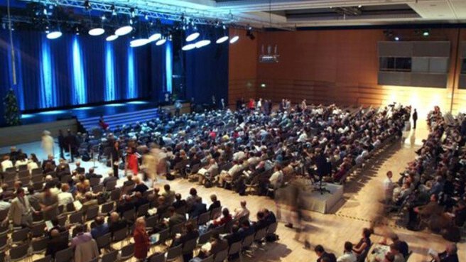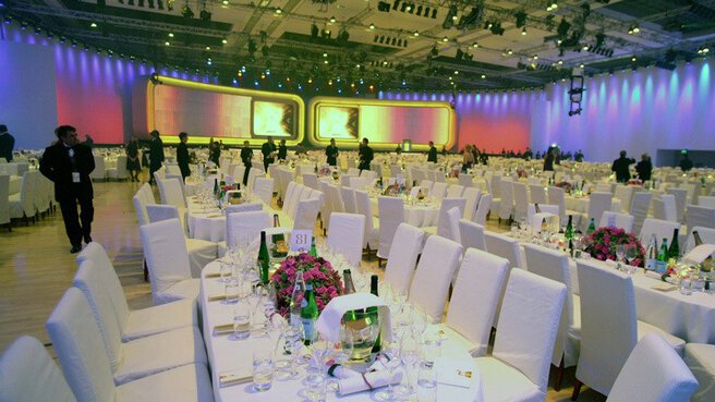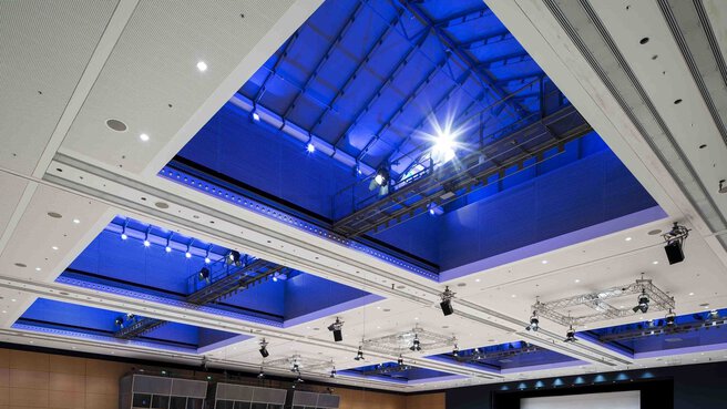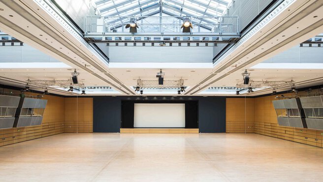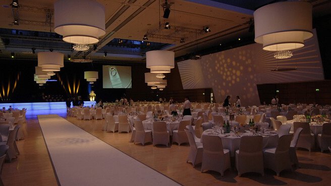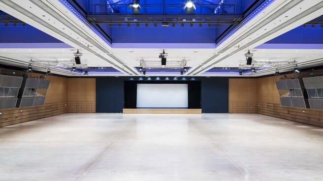 Unser multifunktionaler Saal 14 bietet bis zu 3.000 Plätze in 43 Reihen. Die topmoderne Ausstattung umfasst Dolmetscherkabinen, Regieräume und Filmleinwände. Sechs fahrbare Beleuchterbrücken erlauben aufwändige Lichtinszenierungen in allen Bereichen. Der große Saal erhält durch sechs Lichtkuppeln Tageslicht, er kann vollständig verdunkelt werden. Die Raumhöhe beträgt beeindruckende 9,50 m. Mit Hilfe von Trennwänden lässt sich der Saal 14 in bis zu drei kleinere, schalldichte Säle umgestalten. Dieses Multitalent eignet sich hervorragend für Ihre internationalen Kongresse, Shows, Präsentationen und Galaveranstaltungen.
