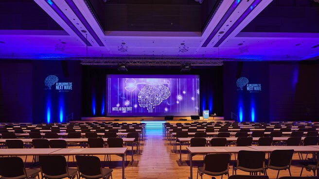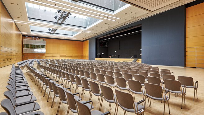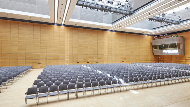 In der kleinen Variante bietet unser Saal 14b Ihnen 1.120 m² und eine Kapazität von 1.050 Sitzplätzen in Reihenbestuhlung, 524 parlamentarischen Sitzen oder 558 Bankettplätzen. Der Saal erhält durch drei Lichtkuppeln Tageslicht, auf Wunsch können wir ihn komplett verdunkeln. Dieser Saal eignet sich besonders für Ihre Kongresse, Produktpräsentationen, Shows und Events bis zu 1.050 Gästen.