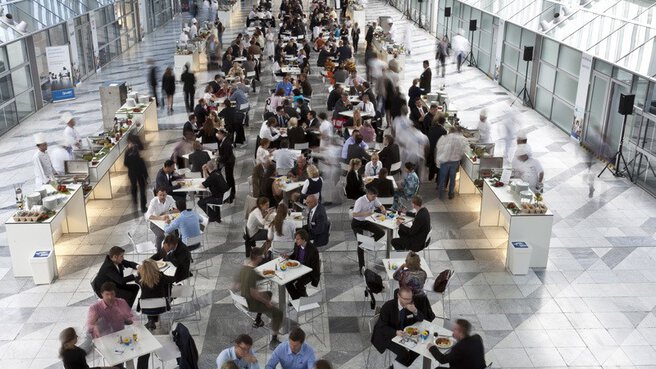 This neutral ambiance made of steel and glass is full of natural light. This makes Atrium 3 especially prestigious and enhances every event. Create your individual exhibit and catering spaces.