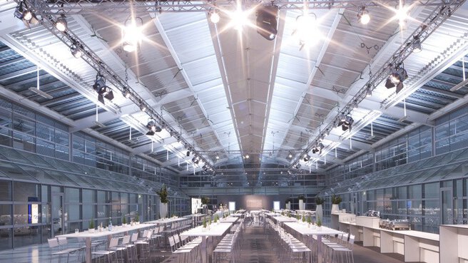 Steel and glass create a neutral ambiance that is light, bright and transparent—making Atrium 4 highly prestigious and an enhancement for every event. Create your own exhibition and catering spaces.